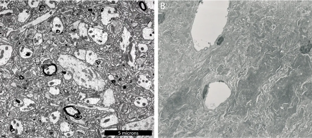 But the electron micrographs coming from the cryonics community didn’t look like what he normally saw in the lab. There was no 3D analysis, just single frames. Worse, the tissue was severely dehydrated, making it difficult or impossible to tell whether the tissue was traceable, that is, whether each synapse could be traced back to its originating neurons.
